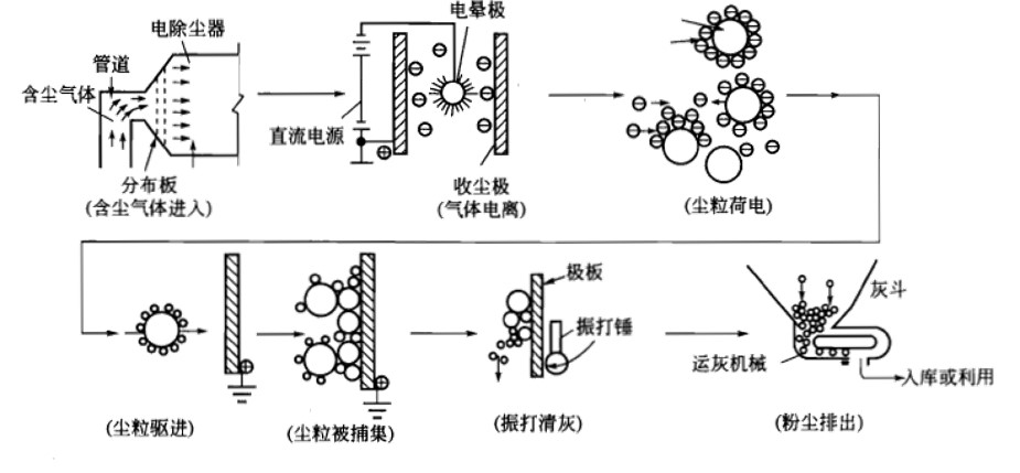 静电除尘的工作原理包含以下几个步骤: